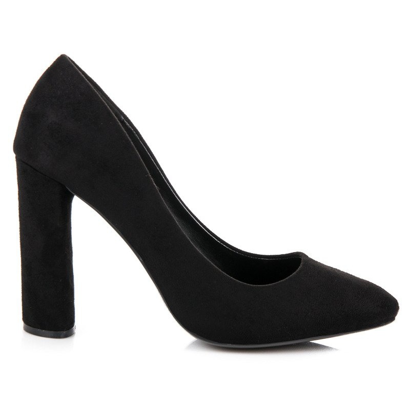 Wybierz czarne zamszowe czółenka na słupku, aby dodać swojemu strojowi odrobinę szyku i komfortu. Wyrusz w świat z pewnością siebie, krok po kroku, dzięki temu wyjątkowemu modelowi!