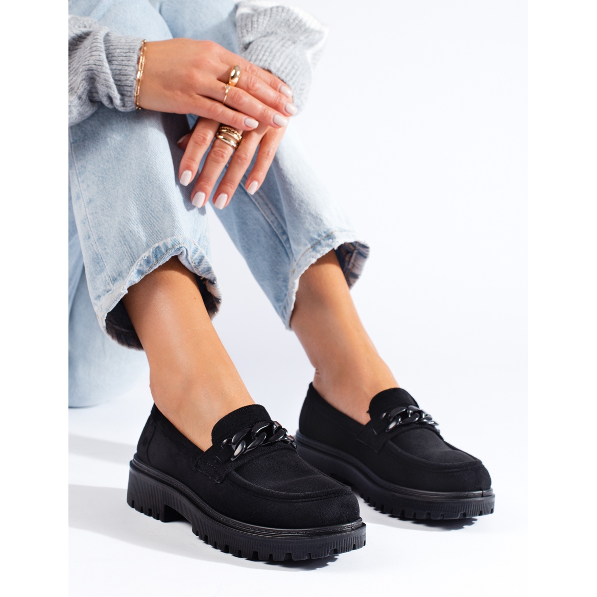 Szczegóły: Zamszowe damskie mokasyny czarne Shelovet