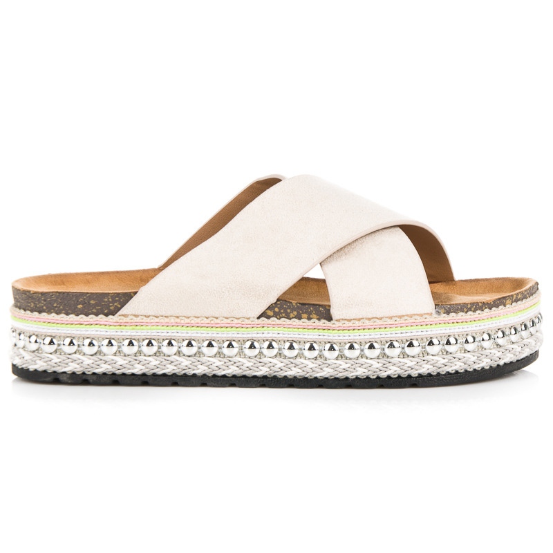 Te zamszowe klapki wyróżniają się minimalistycznym designem, co czyni je uniwersalnymi i łatwymi do zestawienia z różnorodnymi outfitami. Dodatkowo, wysokość platformy wynosząca 3 cm zapewnia komfort noszenia przez cały dzień, a jednocześnie lekko podnosi sylwetkę.