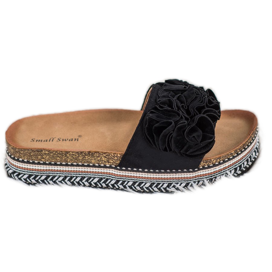 Szczegóły: Small Swan Zamszowe Klapki Z Ozdobami czarne