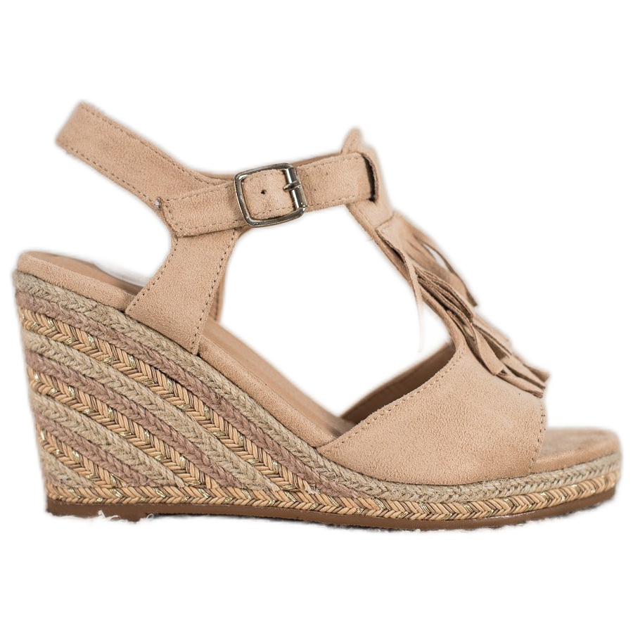 Szczegóły: Small Swan Zamszowe Koturny Z Frędzlami brązowe