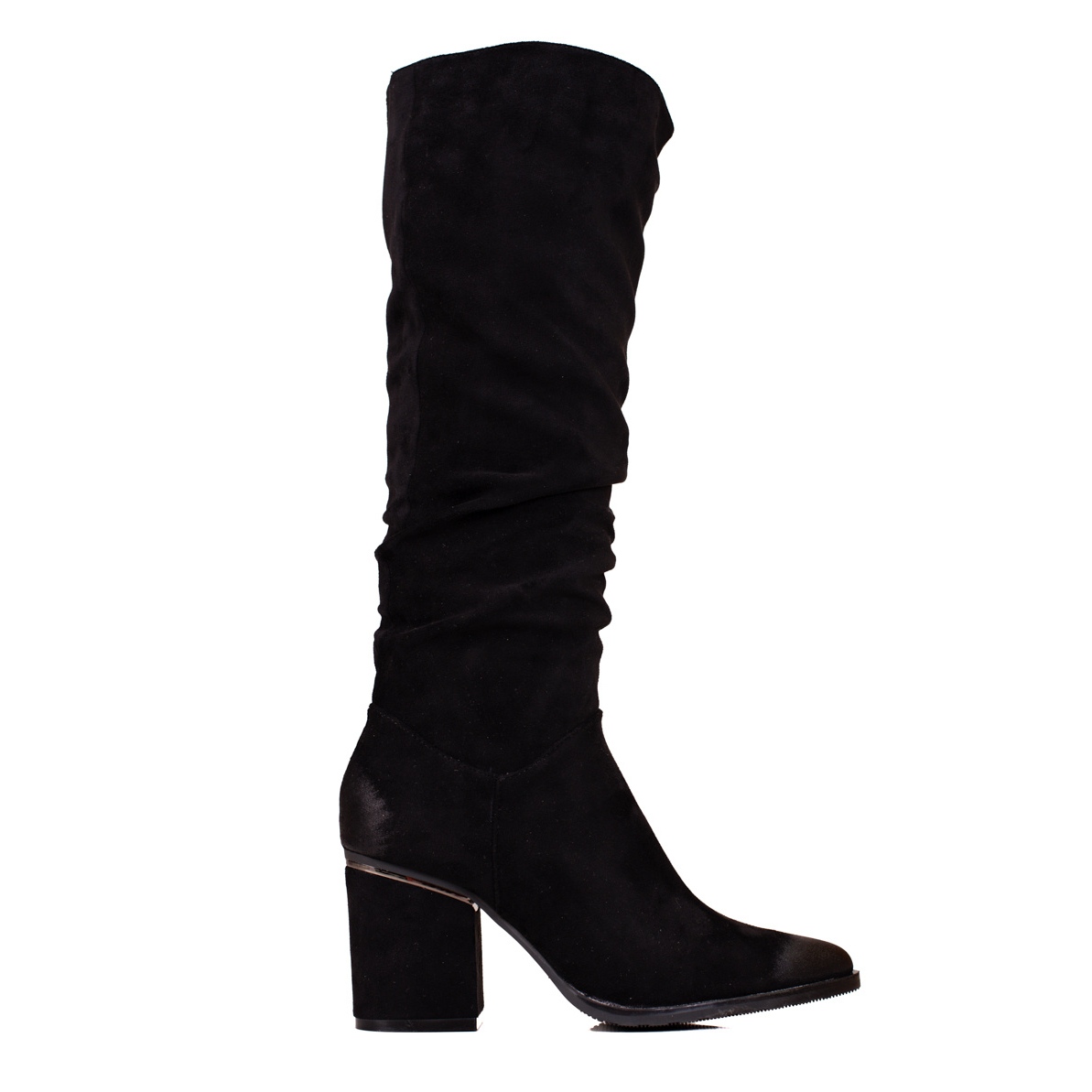 W. Potocki W. Potocki Zamszowe kozaki damskie na słupku Potocki z marszczoną cholewką czarne