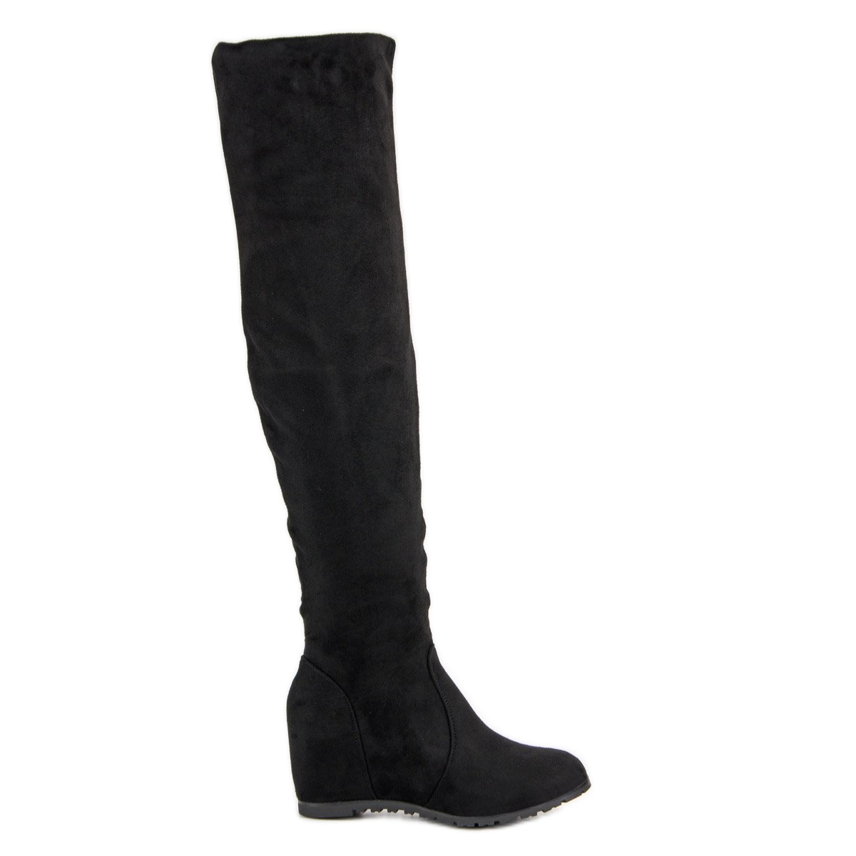 Seastar Seastar Zamszowe kozaki na koturnie czarne