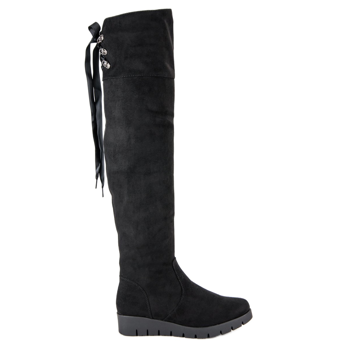 Wysoka cholewka, sięgająca powyżej kolana (54-55 cm), pięknie otula nogę, a delikatna 3 cm koturna sprawia, że łydka wygląda smuklej. Dzięki ociepleniu miękkim futerkiem, te kozaki zapewnią Ci ciepło nawet w najchłodniejsze dni. Wygodne zapięcie łączące suwak i sznurowanie ułatwia zakładanie i dopasowanie do stopy.
