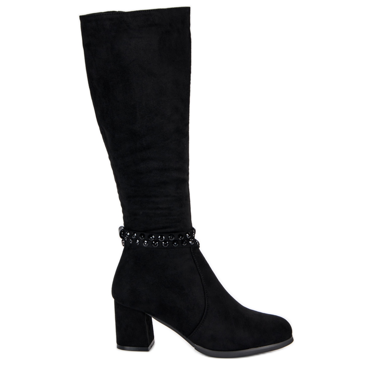 Szczegóły: Zamszowe kozaki na słupku czarne