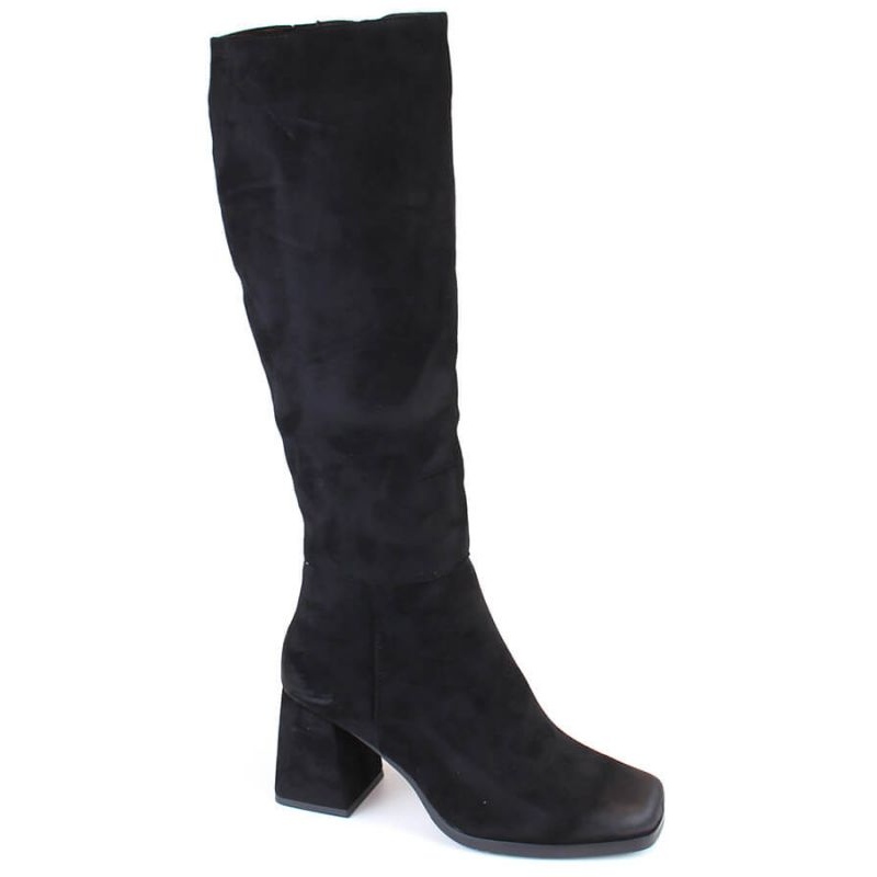 Zamszowe kozaki na słupku Potocki W WOL192A — czarne