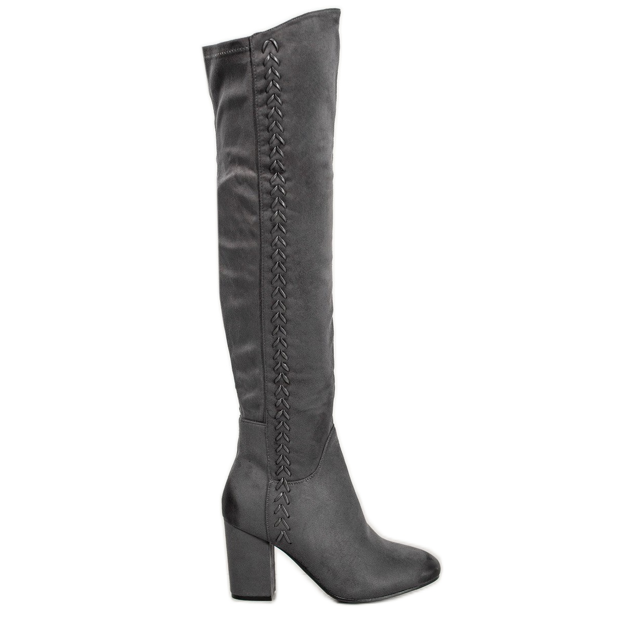 Kozaki S. BARSKI to doskonały wybór dla kobiet poszukujących eleganckiego, a zarazem komfortowego obuwia na sezon jesień/zima. Wykonane z wysokiej jakości skóry ekologicznej o zamszowym wykończeniu, prezentują się stylowo i nowocześnie. Długi fason cholewki sięgającej za kolano w modnym szarym kolorze z subtelnym ozdobnym wzorkiem sprawia, że pasują do wielu stylizacji — zarówno na co dzień, jak i na wieczorne wyjścia.