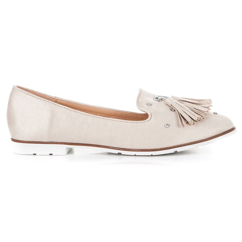 Lekkie i komfortowe, lordsy wykonane są z jasnobrązowej skóry ekologicznej, która świetnie komponuje się z wiosenno-letnimi stylizacjami. Zapięcie w formie wsuwanej umożliwia łatwe zakładanie, co jest nieocenione w codziennym użytkowaniu. Dodatkowo, podeszwa z tworzywa sztucznego zapewnia trwałość oraz wygodę, a wysokość obcasa wynosząca 3 cm sprawia, że są one idealne do noszenia przez cały dzień.