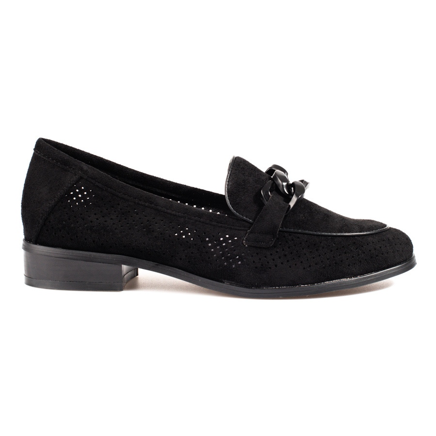 W. Potocki — Zamszowe mokasyny damskie ażurowe, czarne