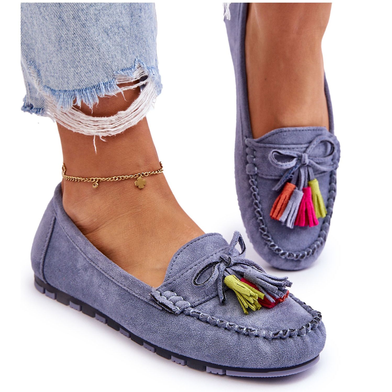 Inna marka Zamszowe Mokasyny Z Kokardą I Frędzlami Niebieskie