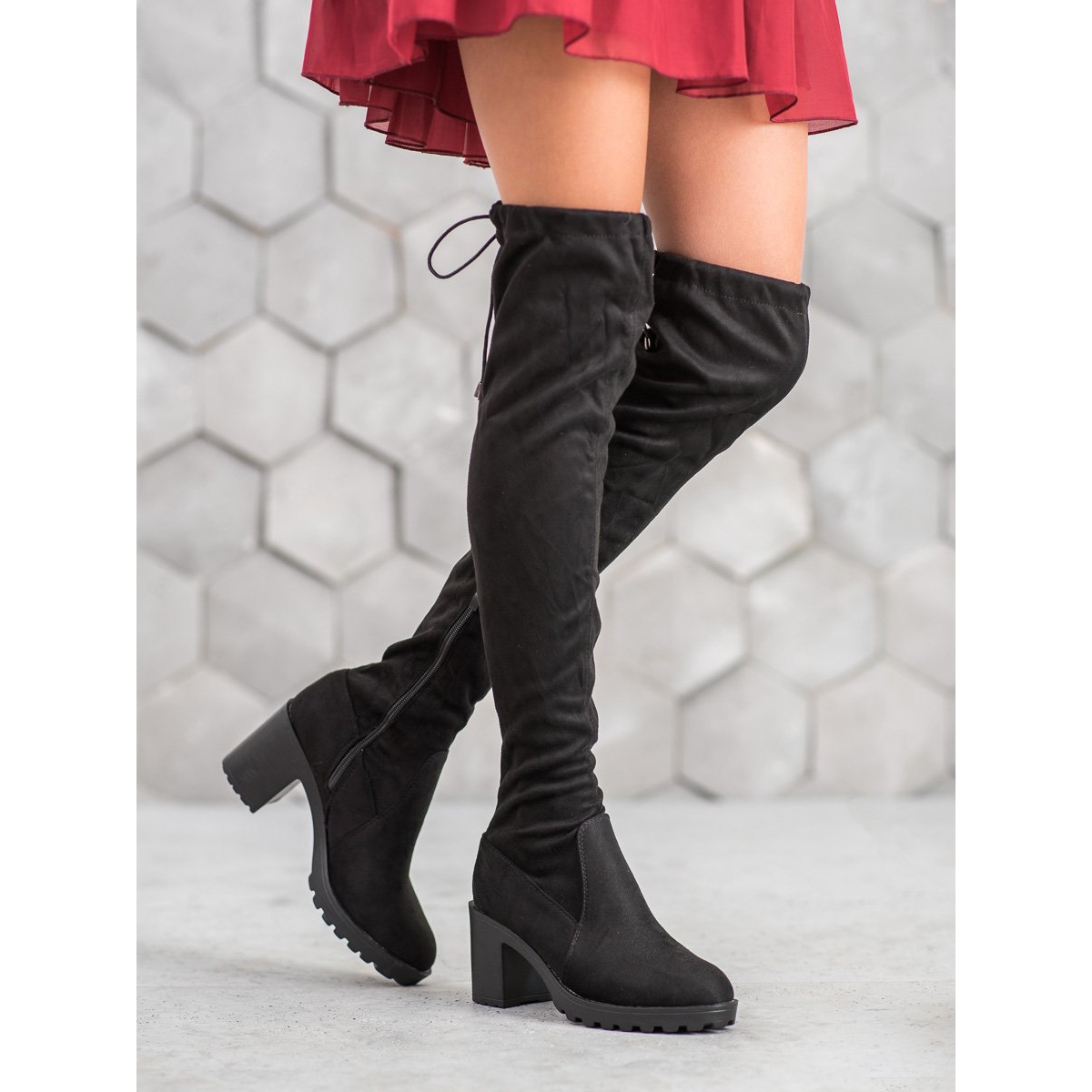 Szczegóły: Small Swan Zamszowe Muszkieterki Na Słupku czarne