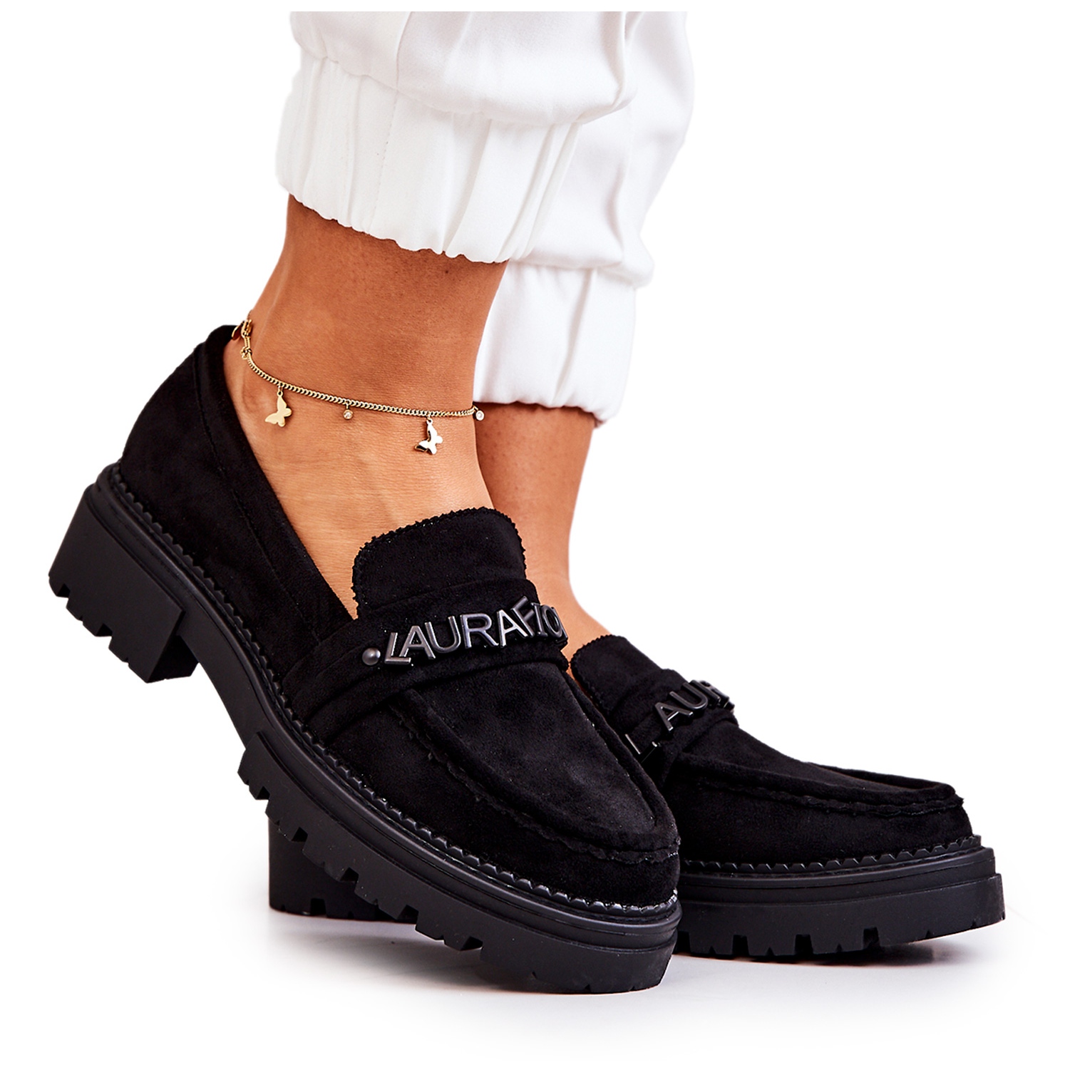 Szczegóły: PL5 Zamszowe Półbuty Loafery Literki La.Fi Czarne Jenefer
