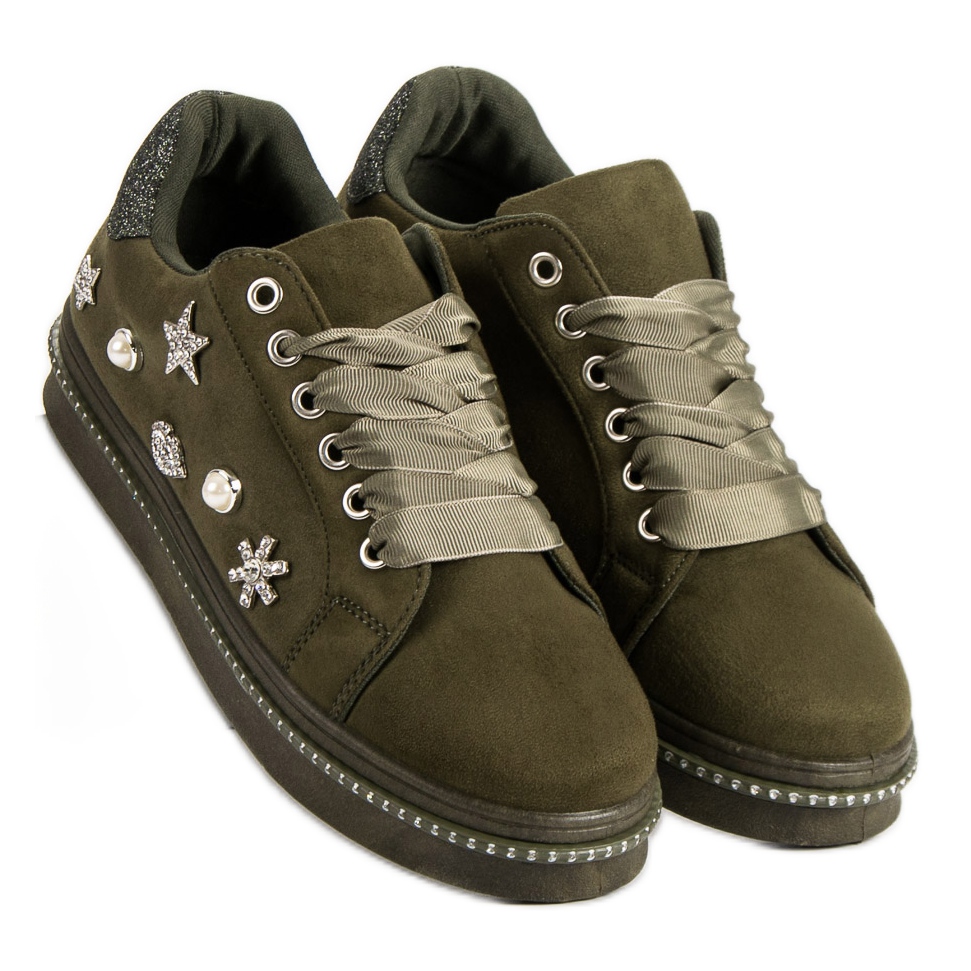 Inna marka Zamszowe Trampki Z Dżetami zielone