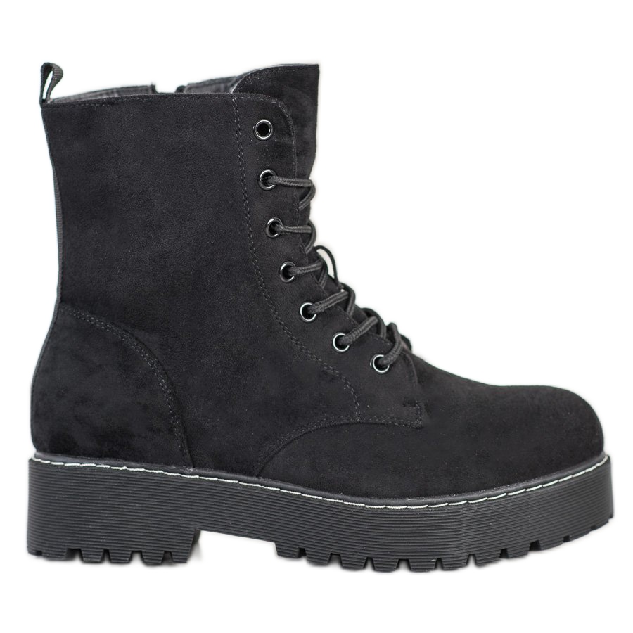 SHELOVET SHELOVET Zamszowe Trapery Na Platformie czarne