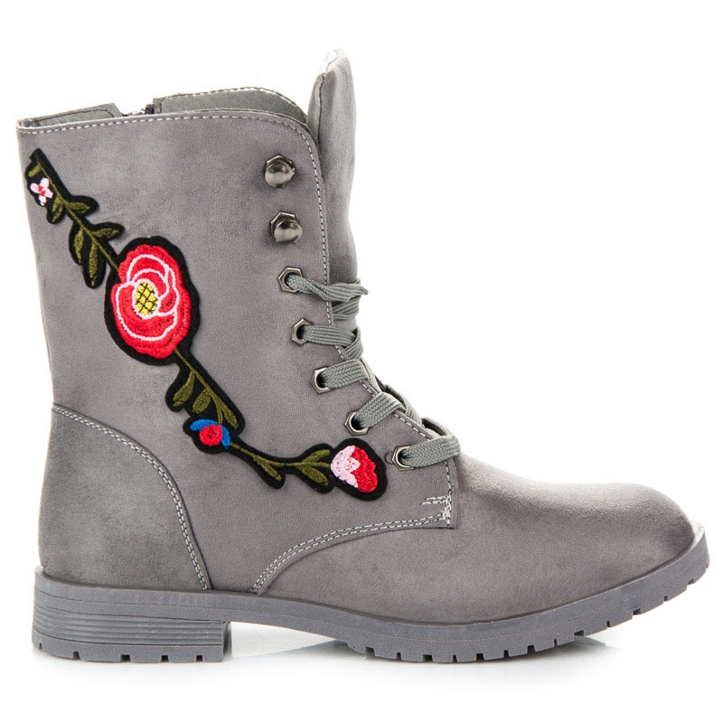 Szczegóły: Sport Zamszowe workery z haftem szare