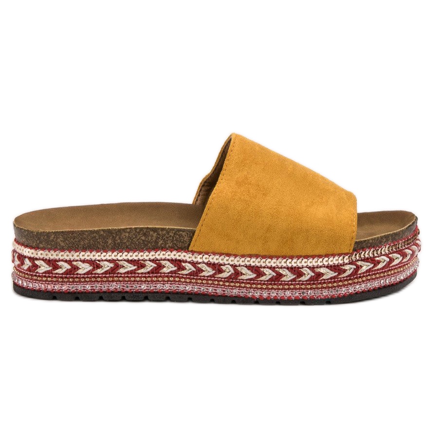 Jumex Jumex Zdobione Klapki Na Platformie żółte