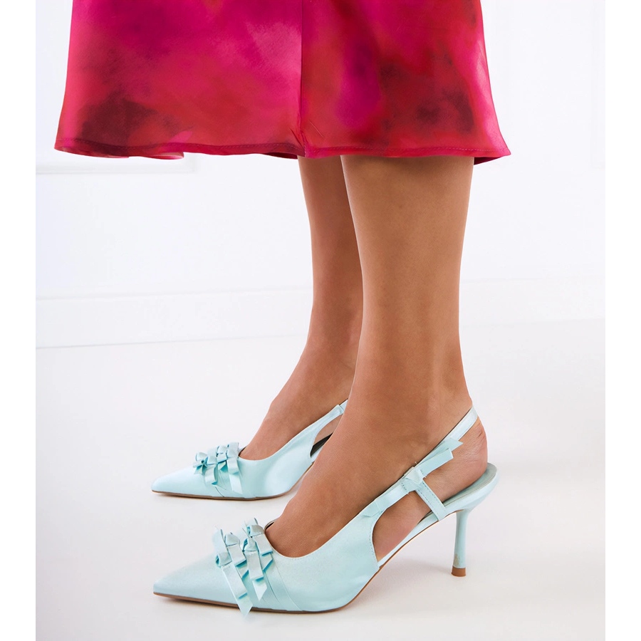 Inna marka Zielone czółenka na szpilce z kokardkami