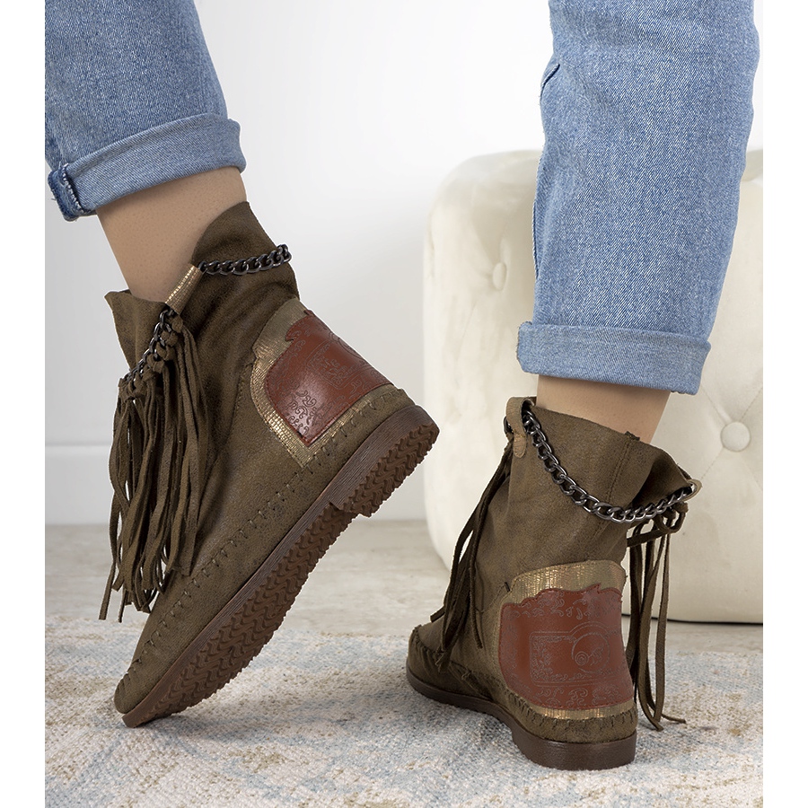 Szczegóły: Zielone damskie botki w stylu boho Maral