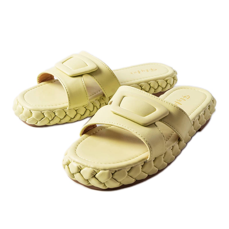 Dzięki niskiemu profilu i wysokości platformy wynoszącej tylko 3 cm, klapki te są nie tylko eleganckie, ale także wygodne do noszenia przez cały dzień. Wsuwane zapięcie ułatwia zakładanie i zdejmowanie, co czyni je idealnym wyborem na co dzień. Brązowa podeszwa z gumy zapewnia doskonałą przyczepność i stabilność na różnych powierzchniach.