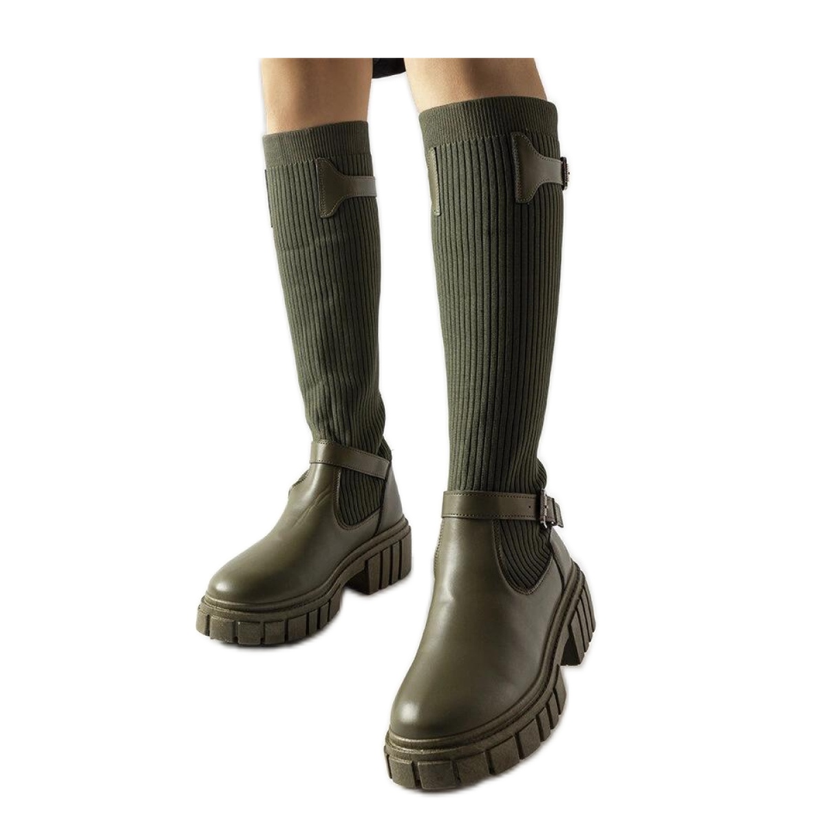 Szczegóły: Zielone kozaki z elastyczną cholewką