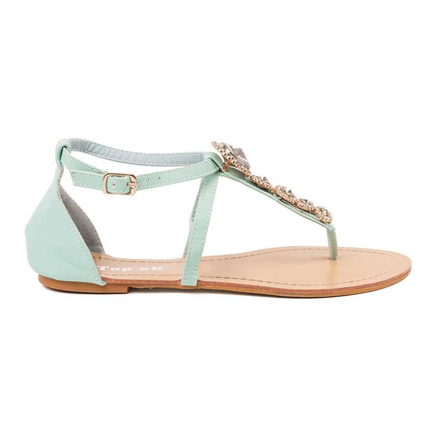 Szczegóły: Zielone sandałki ozdobione cyrkoniami