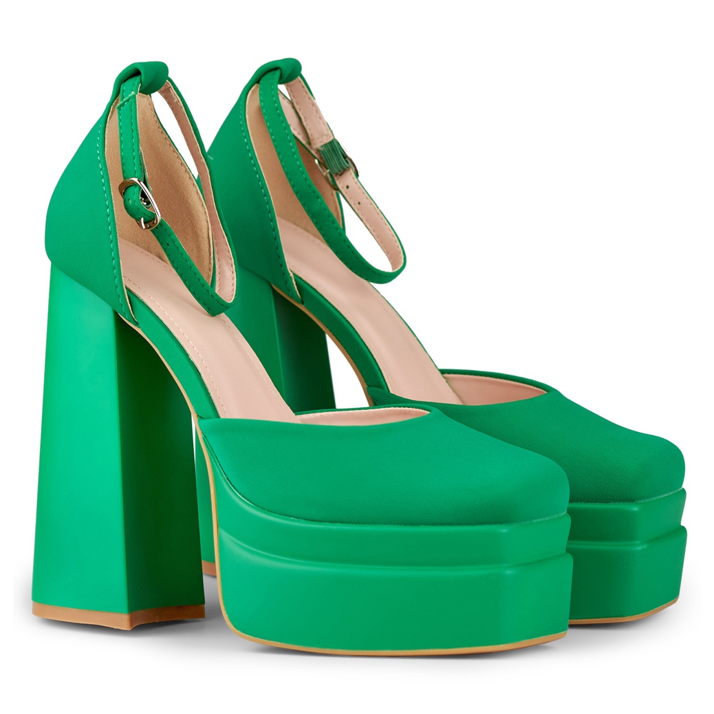 Zielone sandały na wysokim słupku Libby — elegancja i wygoda na wiosnę/lato.