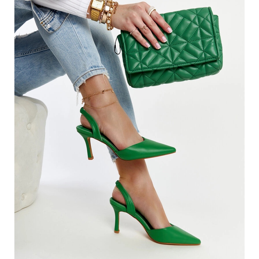 Inna marka Zielone szpilki z odkrytą piętą Fontanile
