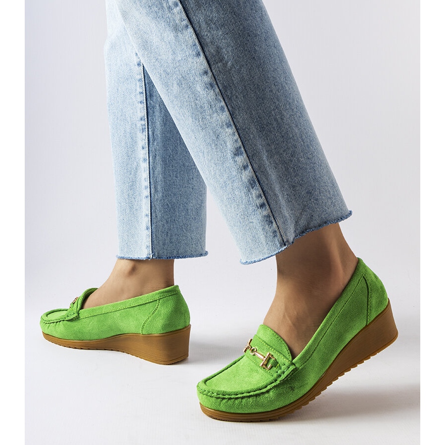 Szczegóły: Zielone zamszowe mokasyny na koturnie Canis