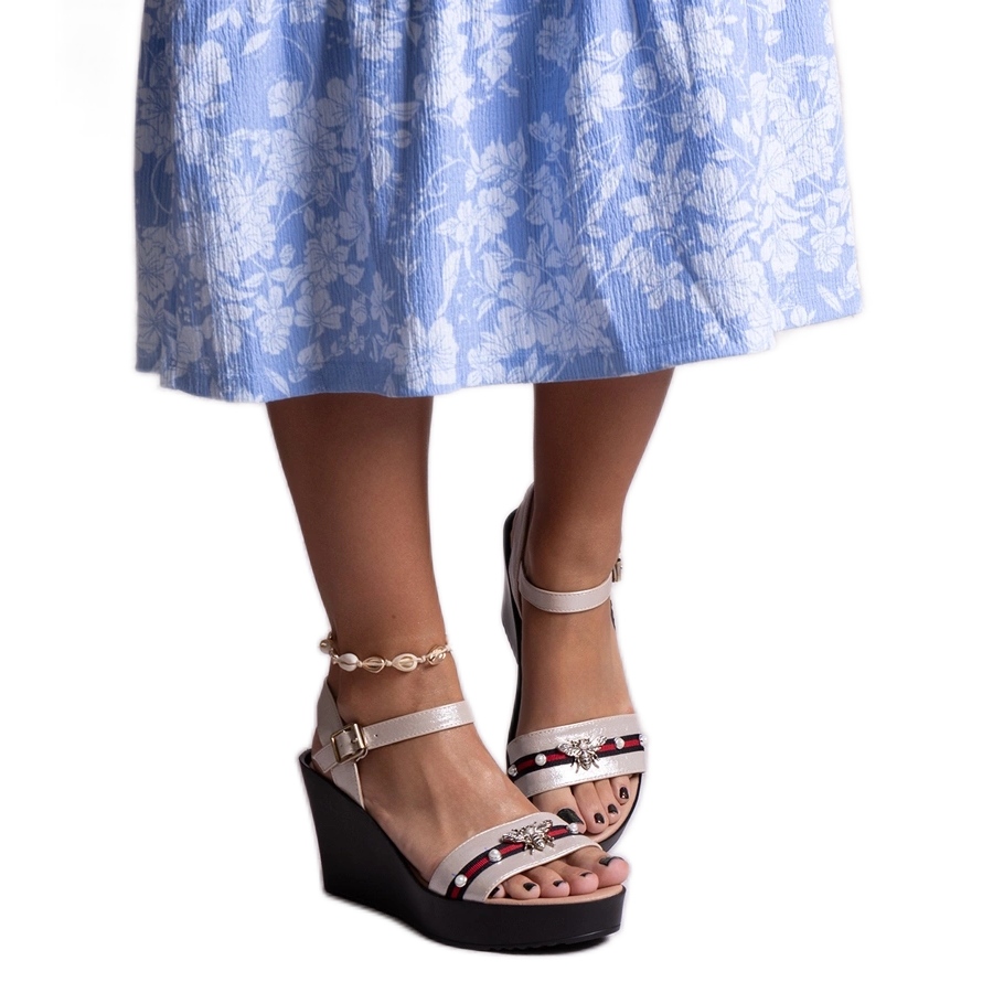 - Model: BJ81153-1 Złote sandały na koturnie z ozdobą