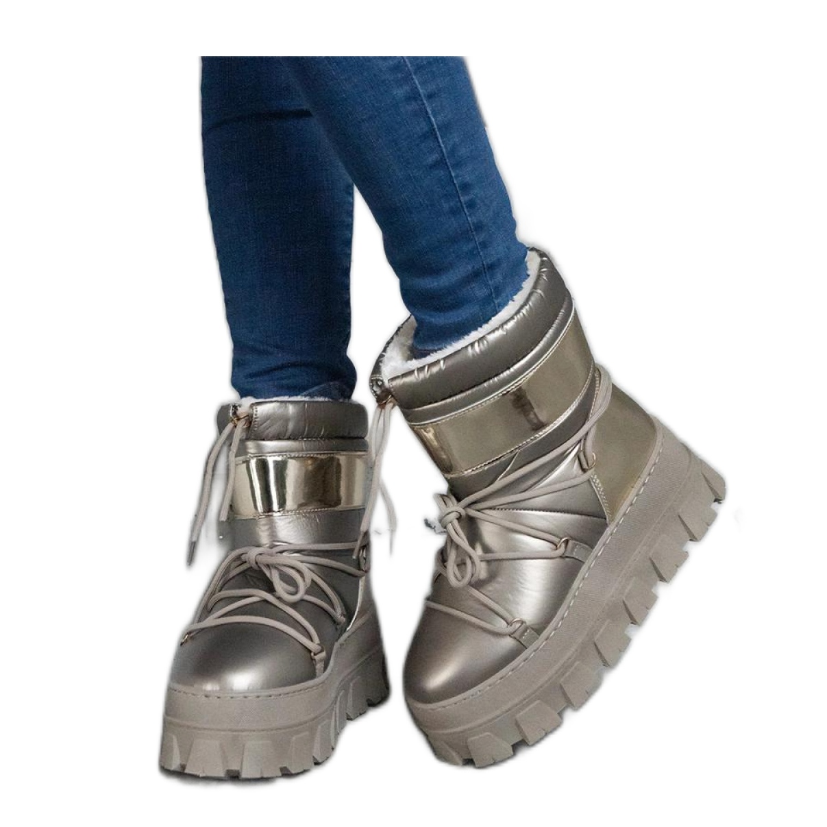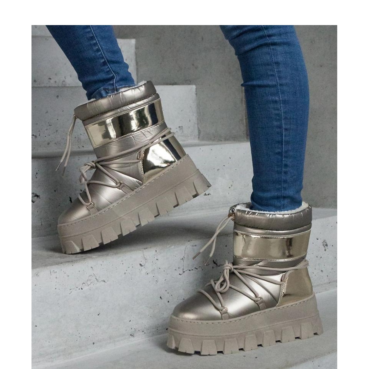 Solea Złote śniegowce na platformie z lakierowanymi wstawkami Losta - Solea